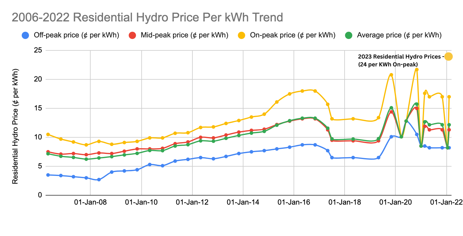 Many utility companies in Ontario, including Hydro One, Alectra Utilities, Elexicon Energy, Hydro Ottawa and Toronto Hydro, have increased their electricity rates in an attempt to recover the costs of snow storms and the inflated gas prices that we witnessed in 2022.